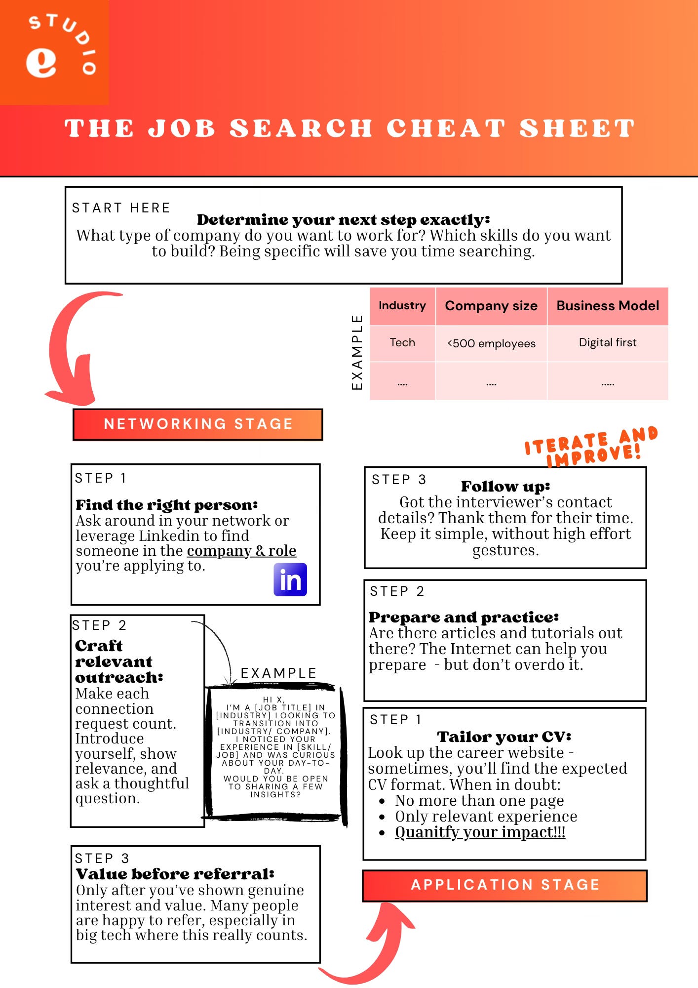 Adjacent to our Job Search Playbook from last week, here is the Job Search Cheat Sheet.